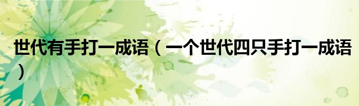 大家好,小晋来为大家解答以下问题,关于世代有手打一成语,一个世代四只手打一成语很多人还不知道,今天让我们一起来看看吧!