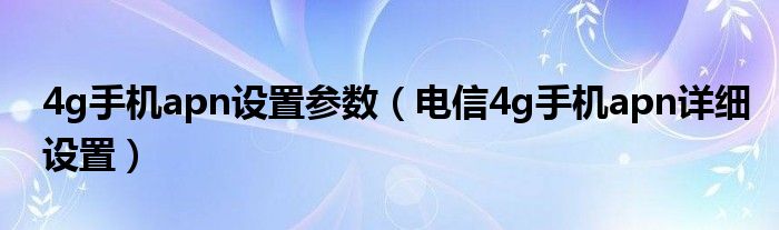 大家好,小晋来为大家解答以下问题,关于4g手机apn设置参数,电信4g手机apn详细设置很多人还不知道,今天让我们一起来看看吧!