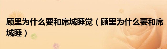 大家好,小晋来为大家解答以下问题,关于顾里为什么要和席城睡觉,顾里为什么要和席城睡很多人还不知道,今天让我们一起来看看吧!