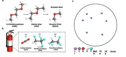 该团队设计的初始LGE是基于氟甲烷(FM)和二氟甲烷(DFM)。尽管它们具有优势,但这些电解质在中等操作压力下仍然是易燃的。