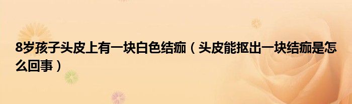 大家好,linda来为大家解答以上的问题。8岁孩子头皮上有一块白色结痂,头皮能抠出一块结痂是怎么回事很多人还不知道,现在让我们一起来看看吧!
