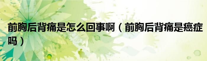 大家好,linda来为大家解答以上的问题。前胸后背痛是怎么回事啊,前胸后背痛是癌症吗很多人还不知道,现在让我们一起来看看吧!