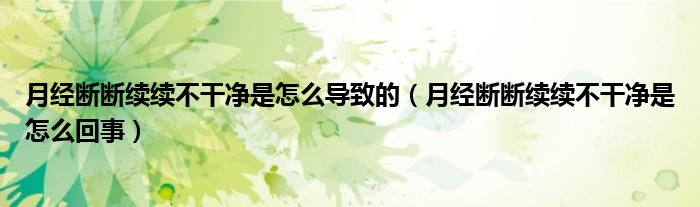 大家好,linda来为大家解答以上的问题。月经断断续续不干净是怎么导致的,月经断断续续不干净是怎么回事很多人还不知道,现在让我们一起来看看吧!