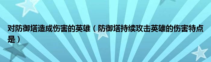 大家好,来宝来为大家解答以下问题,对防御塔造成伤害的英雄,防御塔持续攻击英雄的伤害特点是很多人还不知道,今天让我们一起来看看吧!