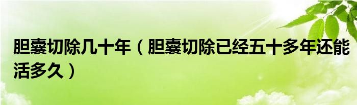大家好,linda来为大家解答以上的问题。胆囊切除几十年,胆囊切除已经五十多年还能活多久很多人还不知道,现在让我们一起来看看吧!