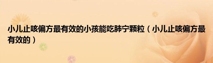 大家好,linda来为大家解答以上的问题。小儿止咳偏方最有效的小孩能吃肺宁颗粒,小儿止咳偏方最有效的很多人还不知道,现在让我们一起来看看吧!