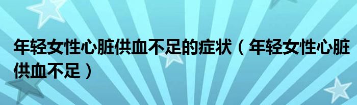 大家好,linda来为大家解答以上的问题。年轻女性心脏供血不足的症状,年轻女性心脏供血不足很多人还不知道,现在让我们一起来看看吧!