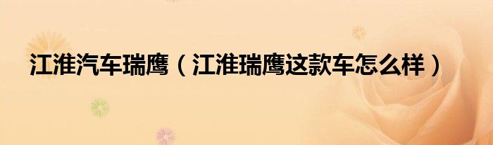 江淮汽车瑞鹰(江淮瑞鹰这款车怎么样)