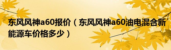 1,东风风神a60油电混合新能源车价格多少 :补贴后售价将在15万元左右吧