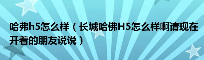 1,长城哈佛H5怎么样啊请现在开着的朋友说说 :我就有一台H5,在成都用车,我觉的各方面都还不错,我买的是柴油2.0的欧风版手动的,工地上用,六个前进挡是我最终选中的主要原因,省油啊,就是车型有点大,以前开轿车,有点不习惯,不过视野和舒适性都很好