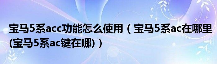大家好,小常来为大家解答以下问题,对于宝马5系acc功能怎么使用,宝马5系ac在哪里(宝马5系ac键在哪)很多人还不知道,今天让我们一起来看看吧!