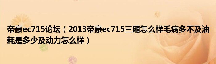 大家好,小常来为大家解答以下问题,对于帝豪ec715论坛,2013帝豪ec715三厢怎么样毛病多不及油耗是多少及动力怎么样很多人还不知道,今天让我们一起来看看吧!
