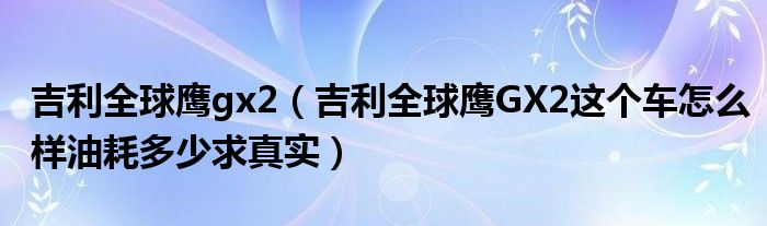 2,吉利全球鹰GX2怎么样:我 刚买了一辆。性能可以。油耗 长途5.8 市区9.7 综合7。2 手动挡1.3的 自动挡1.5的 缺点是油耗太大。比较费油。备胎罩没有。要淘宝上买。希望给加分哦。