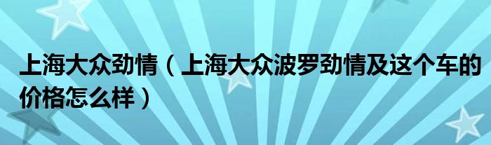 大家好,小常来为大家解答以下问题,对于上海大众劲情,上海大众波罗劲情及这个车的价格怎么样很多人还不知道,今天让我们一起来看看吧!