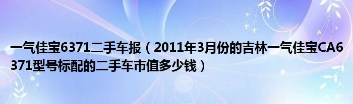 大家好,小常来为大家解答以下问题,对于一气佳宝6371二手车报,2011年3月份的吉林一气佳宝CA6371型号标配的二手车市值多少钱很多人还不知道,今天让我们一起来看看吧!