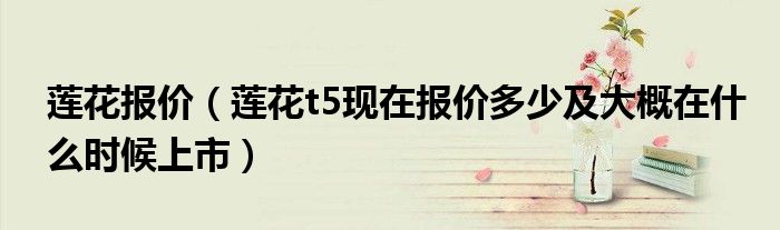 大家好,小常来为大家解答以下问题,对于莲花报价,莲花t5现在报价多少及大概在什么时候上市很多人还不知道,今天让我们一起来看看吧!