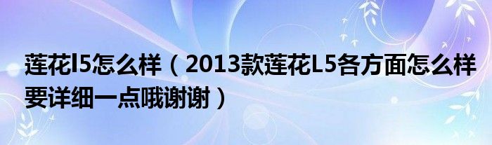 大家好,小常来为大家解答以下问题,对于莲花l5怎么样,2013款莲花L5各方面怎么样要详细一点哦谢谢很多人还不知道,今天让我们一起来看看吧!
