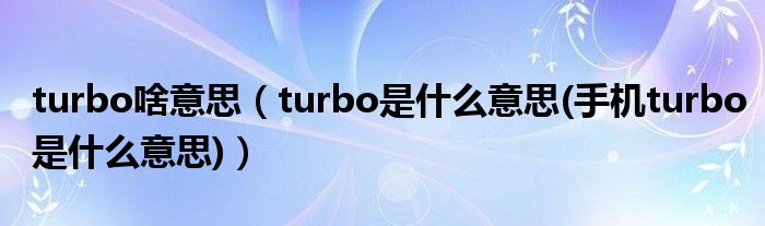 turbo啥意思(turbo是什么意思(手机turbo是什么意思))