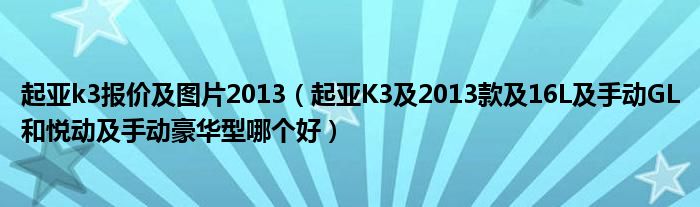 大家好,小常来为大家解答以下问题,对于起亚k3报价及图片2013,起亚K3及2013款及16L及手动GL和悦动及手动豪华型哪个好很多人还不知道,今天让我们一起来看看吧!