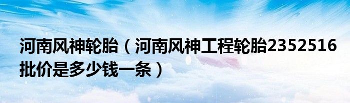 1,河南风神工程轮胎2352516批价是多少钱一条 :8000左右