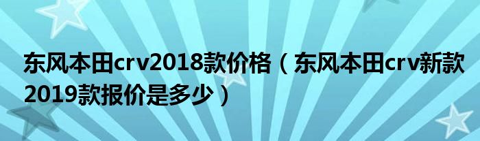 大家好,阳阳来为大家讲解下。东风本田crv2018款价格,东风本田crv新款2019款报价是多少很多人还不知道,现在让我们一起来看看吧!