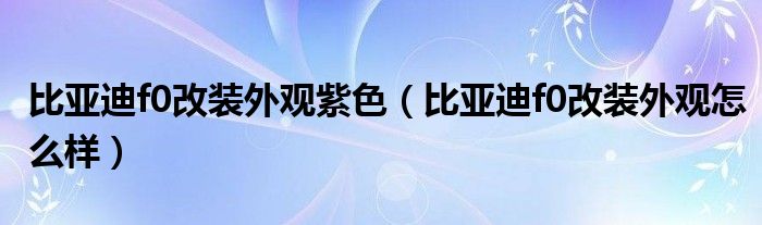 大家好,阳阳来为大家讲解下。比亚迪f0改装外观紫色,比亚迪f0改装外观怎么样很多人还不知道,现在让我们一起来看看吧!