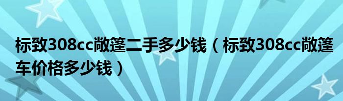 大家好,阳阳来为大家讲解下。标致308cc敞篷二手多少钱,标致308cc敞篷车价格多少钱很多人还不知道,现在让我们一起来看看吧!