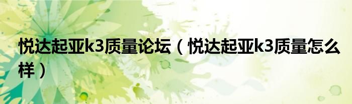 大家好,阳阳来为大家讲解下。悦达起亚k3质量论坛,悦达起亚k3质量怎么样很多人还不知道,现在让我们一起来看看吧!