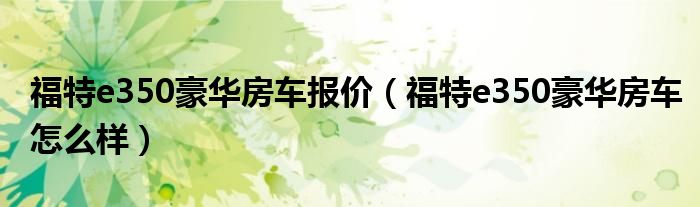 大家好,阳阳来为大家讲解下。福特e350豪华房车报价,福特e350豪华房车怎么样很多人还不知道,现在让我们一起来看看吧!