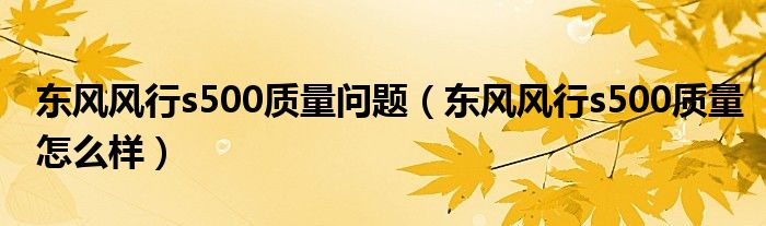 大家好,阳阳来为大家讲解下。东风风行s500质量问题,东风风行s500质量怎么样很多人还不知道,现在让我们一起来看看吧!