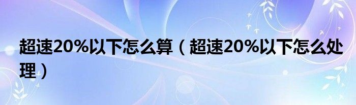 大家好,阳阳来为大家讲解下。超速20%以下怎么算,超速20%以下怎么处理很多人还不知道,现在让我们一起来看看吧!