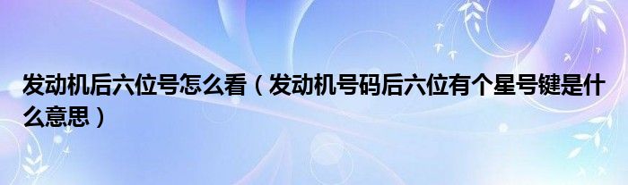 大家好,阳阳来为大家讲解下。发动机后六位号怎么看,发动机号码后六位有个星号键是什么意思很多人还不知道,现在让我们一起来看看吧!