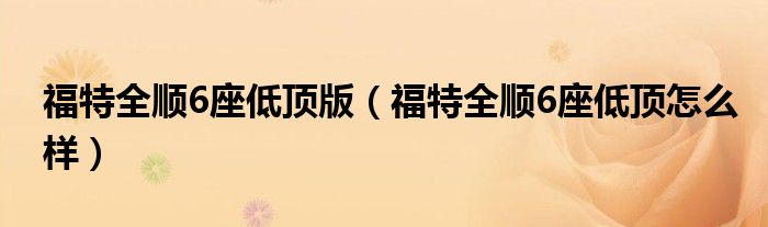 大家好,阳阳来为大家讲解下。福特全顺6座低顶版,福特全顺6座低顶怎么样很多人还不知道,现在让我们一起来看看吧!