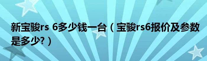1、宝骏rs6还没上市,所以无法估计价格和参数。具体情况要等上市后才能知道:宝骏品牌是上汽通用五菱积累20多年造车经验,融合8年合资经营精髓,充分整合SAIC、通用、五菱三方股东优势,努力打造适合全球新兴市场的品牌的乘用车品牌。