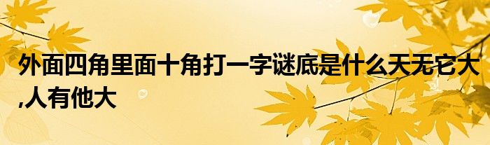 关于外面四角里面十角打一字谜底是什么天无它大,人有他大这个很多人还不知道,今天菲菲来为大家解答以上的问题,现在让我们一起来看看吧!