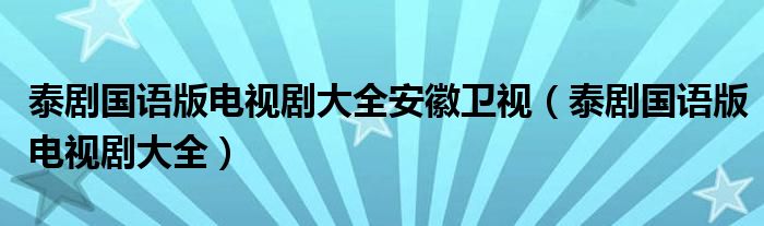 泰剧国语版电视剧大全安徽卫视(泰剧国语版电视剧大全)