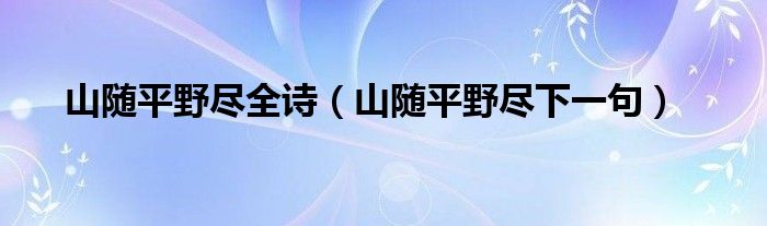 关于山随平野尽全诗,山随平野尽下一句这个很多人还不知道,今天菲菲来为大家解答以上的问题,现在让我们一起来看看吧!