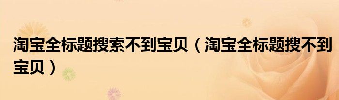 关于淘宝全标题搜索不到宝贝,淘宝全标题搜不到宝贝这个很多人还不知道,今天菲菲来为大家解答以上的问题,现在让我们一起来看看吧!