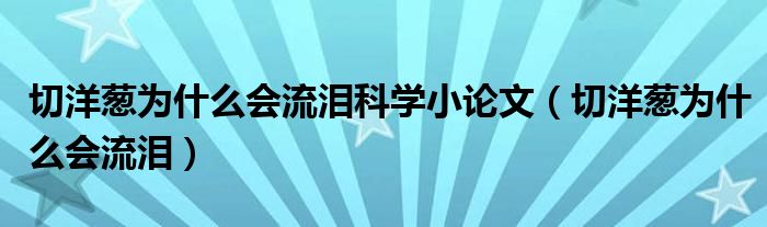 关于切洋葱为什么会流泪科学小论文,切洋葱为什么会流泪这个很多人还不知道,今天菲菲来为大家解答以上的问题,现在让我们一起来看看吧!