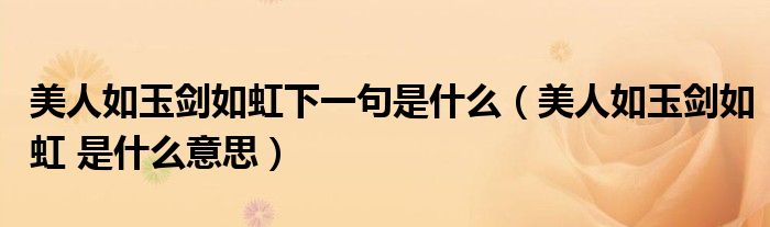 2、2、美人如玉剑如虹”出自清代龚自珍《夜座》,美人如玉形容美人皮肤洁白如玉或喻其品德美如玉!剑如虹则指武侠小说中所描写的“剑气如虹”之意。