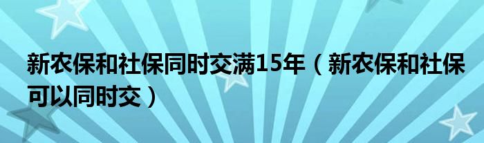 关于新农保和社保同时交满15年,新农保和社保可以同时交这个很多人还不知道,今天菲菲来为大家解答以上的问题,现在让我们一起来看看吧!