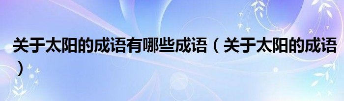 关于关于太阳的成语有哪些成语,关于太阳的成语这个很多人还不知道,今天菲菲来为大家解答以上的问题,现在让我们一起来看看吧!