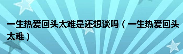 大家好,小晋来为大家解答以下问题,关于一生热爱回头太难是还想谈吗,一生热爱回头太难很多人还不知道,今天让我们一起来看看吧!
