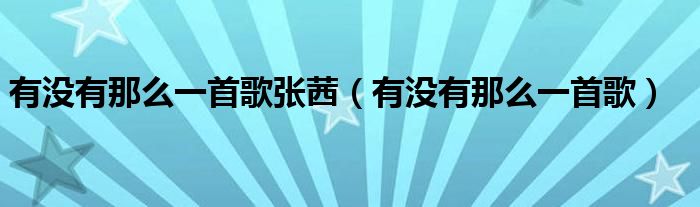 关于有没有那么一首歌张茜,有没有那么一首歌这个很多人还不知道,今天菲菲来为大家解答以上的问题,现在让我们一起来看看吧!