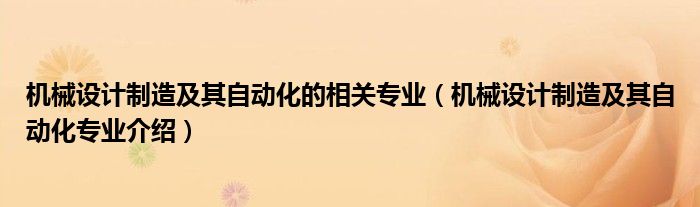关于机械设计制造及其自动化的相关专业,机械设计制造及其自动化专业介绍这个很多人还不知道,今天菲菲来为大家解答以上的问题,现在让我们一起来看看吧!