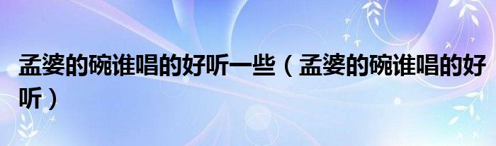 孟婆的碗谁唱的好听一些(孟婆的碗谁唱的好听)