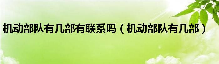 关于机动部队有几部有联系吗,机动部队有几部这个很多人还不知道,今天菲菲来为大家解答以上的问题,现在让我们一起来看看吧!