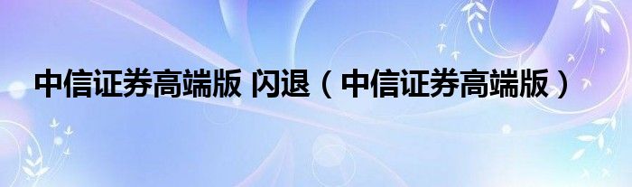 关于中信证券高端版 闪退,中信证券高端版这个很多人还不知道,今天菲菲来为大家解答以上的问题,现在让我们一起来看看吧!