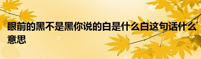 关于眼前的黑不是黑你说的白是什么白这句话什么意思这个很多人还不知道,今天菲菲来为大家解答以上的问题,现在让我们一起来看看吧!