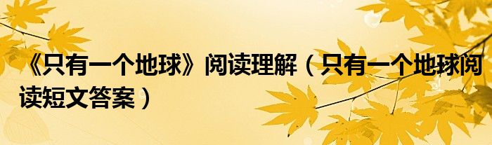 关于《只有一个地球》阅读理解,只有一个地球阅读短文答案这个很多人还不知道,今天菲菲来为大家解答以上的问题,现在让我们一起来看看吧!